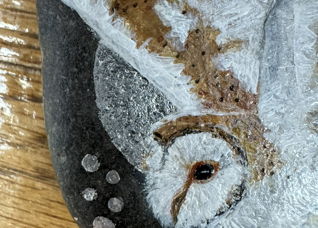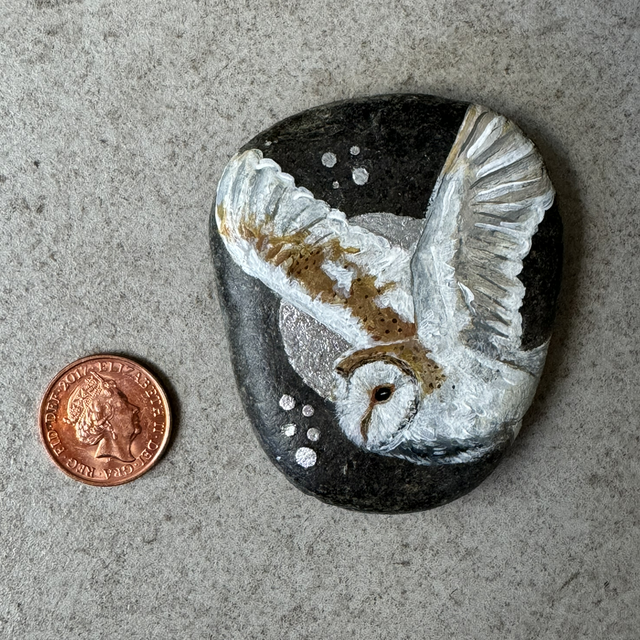 Small miniature painstakingly painted in acrylic on sea-smoothed pebble ground.