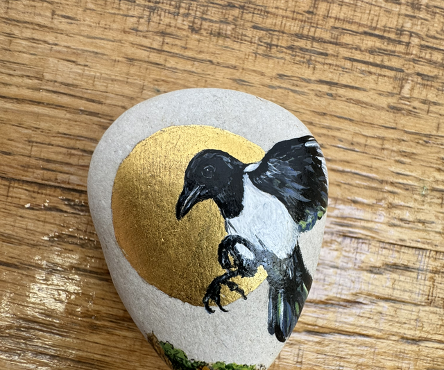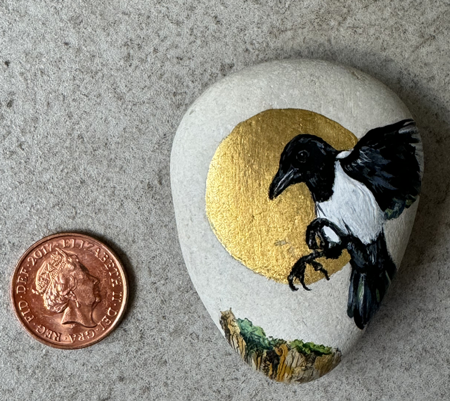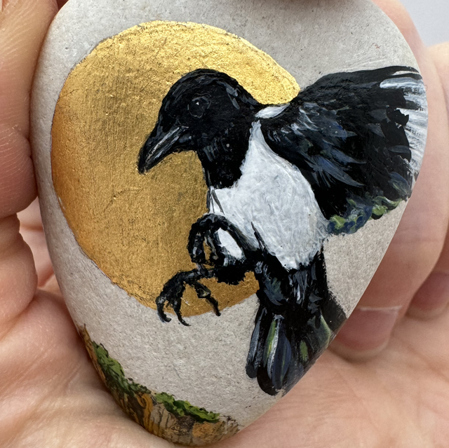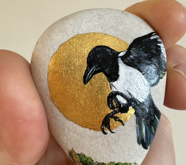 Small miniature painstakingly painted in acrylic on sea-smoothed pebble ground.